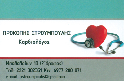 customer tabsΕπικοινωνίαΕιδικός καρδιολόγος, δέχεται καθημερινά 09:00-13:00 & 18:00-21:00 εκτός Τετάρτης.ΚαρδιολόγοιΥγείαΜπαλαλαίων 10, ΧαλκίδαΧΑΛΚΙΔΑ ΕΥΒΟΙΑΣΕΥΒΟΙΑΣΤΕΡΕΑ ΕΛΛΑΔΑ 2221302351 6977280871pstroumpoulis@gmail.com Το προτείνω (έχει προταθεί 0 φορές) ΦωτογραφίεςFacebook LikeShare on FacebookTweet Widget